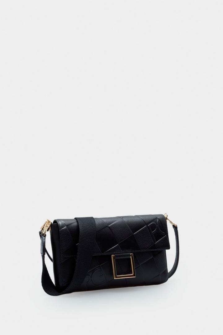 Bolso de hombro en piel con grabado Stamp de cubos y logos PG. Asa de mano en piel y asa de hombro en grosgrain, ambas extraíbles. Solapa personalizada con c…