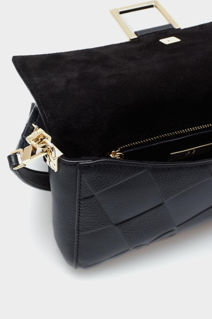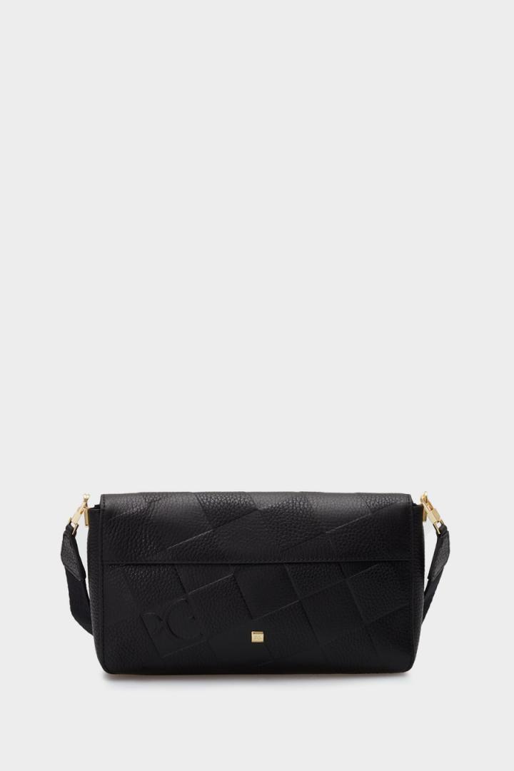 Bolso de hombro en piel con grabado Stamp de cubos y logos PG. Asa de mano en piel y asa de hombro en grosgrain, ambas extraíbles. Solapa personalizada con cierre de metálica en forma de cubo. Interior con forro completo y bolsillo de cremallera.