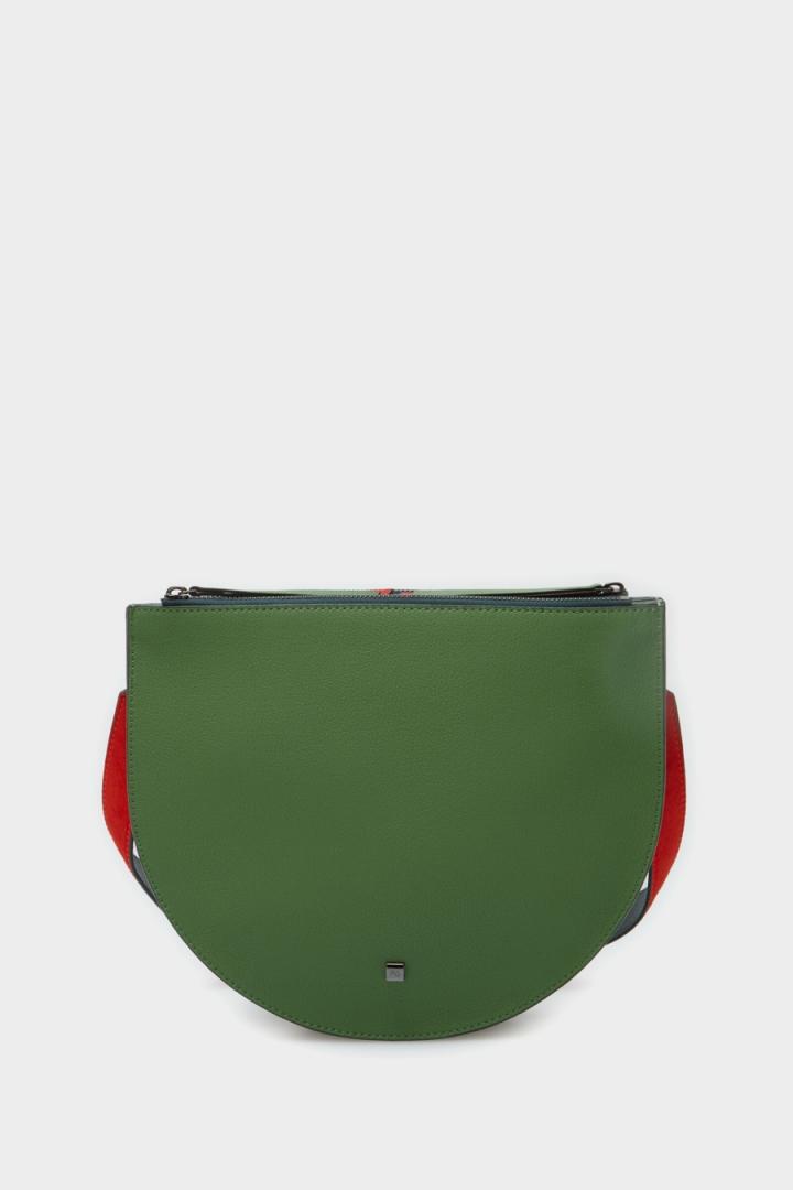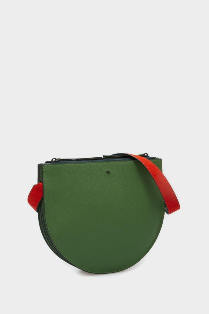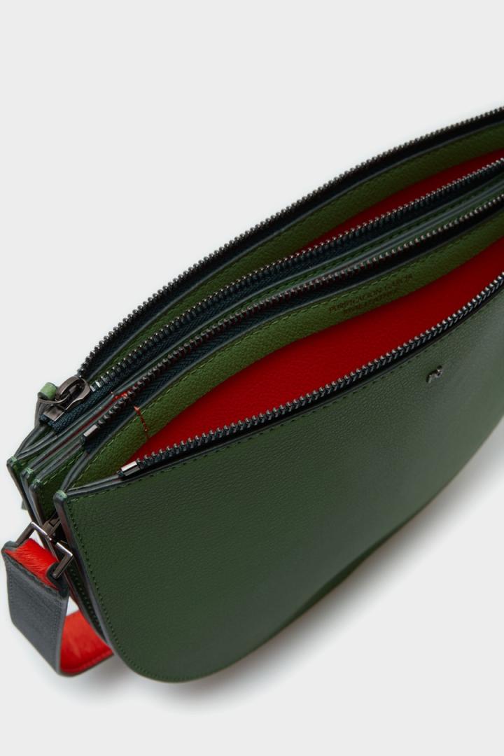 Bolso de hombro mediano en piel. Asa de hombro extraíble en piel a contraste. Cierre de cremallera y dos compartimentos con interior a contraste y un separador central. Detalle de logo PG metálico en la parte delantera y cubo metálico con logo PG grabado en la parte posterior.