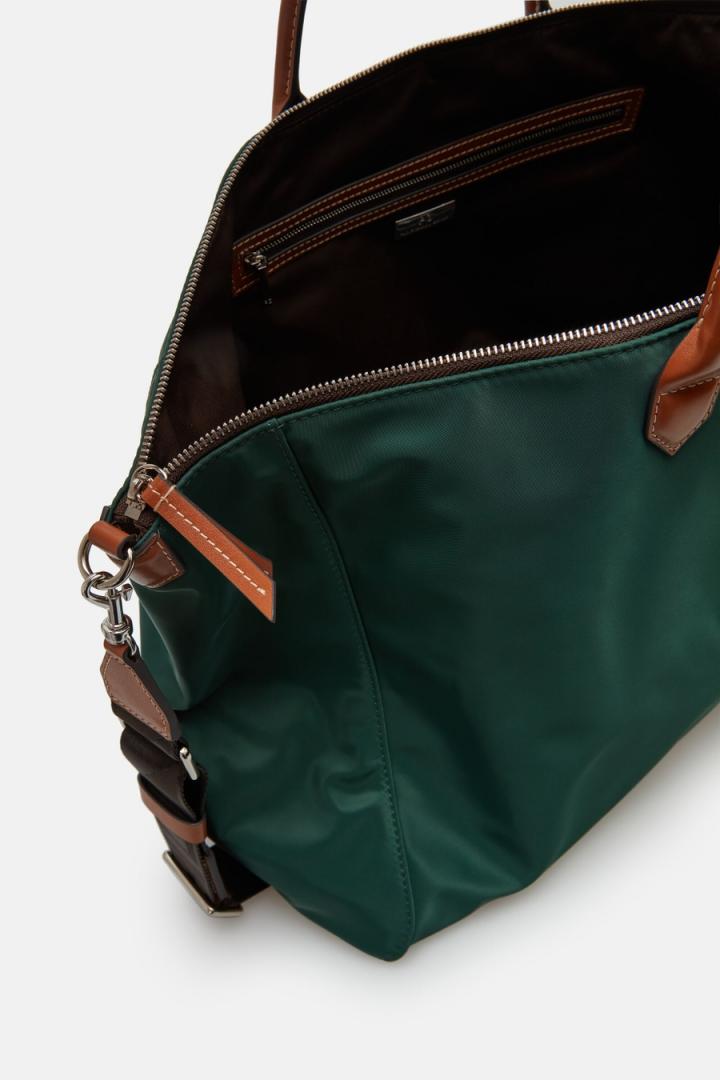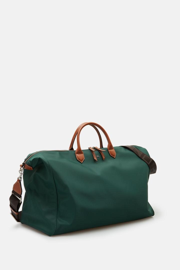 Bolso de mano grande en tejido técnico liso con pespuntes a tono. Dos asas de mano en piel a contraste y un asa bandolera en grosgrain a contraste con Cinta PG estampada. Cierre de cremallera con doble tirador en piel y forro interior completo con un bolsillo con cremallera.