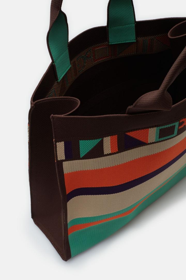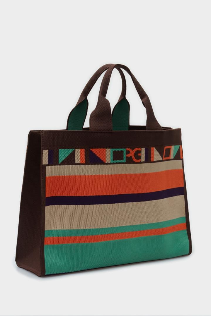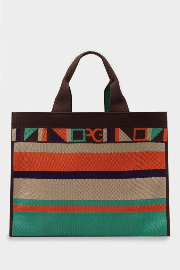 Bolso de mano grande en punto con diseño de rayas y detalle de Cinta PG en la parte superior. Doble asa de mano de punto con interior a contraste.