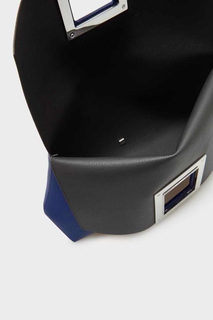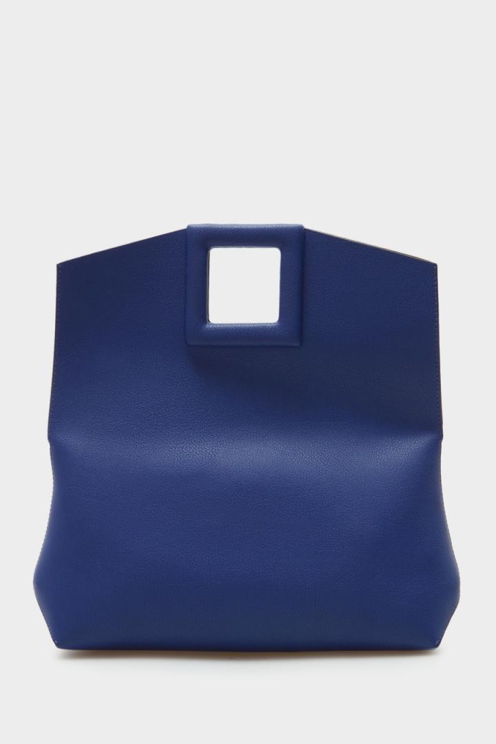 Bolso de mano en piel lisa con lujado a contraste y cierre de imán en forma de cubo troquelado acolchado. Interior de piel a contraste.