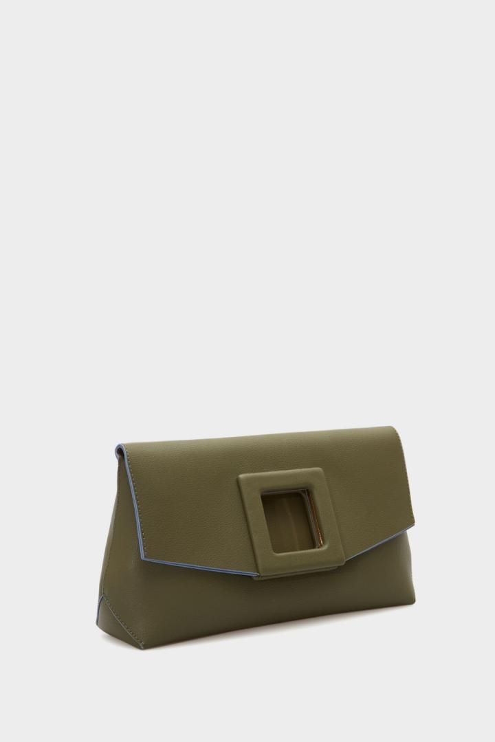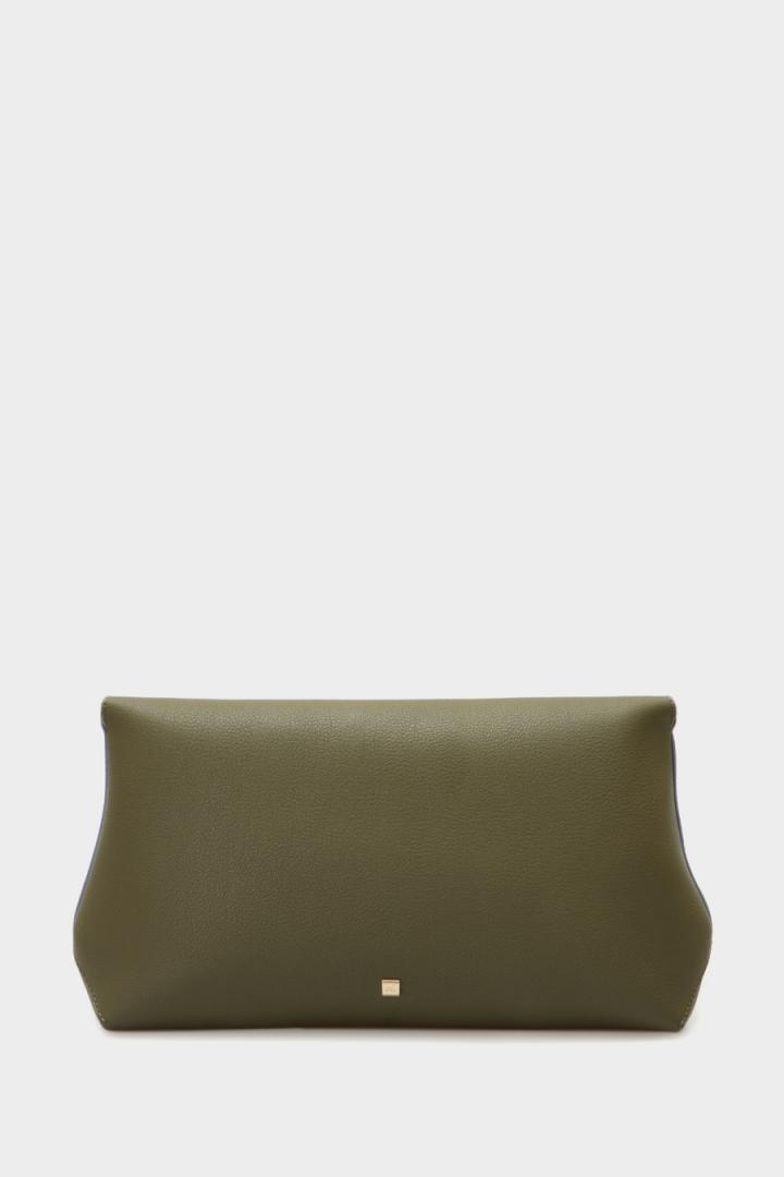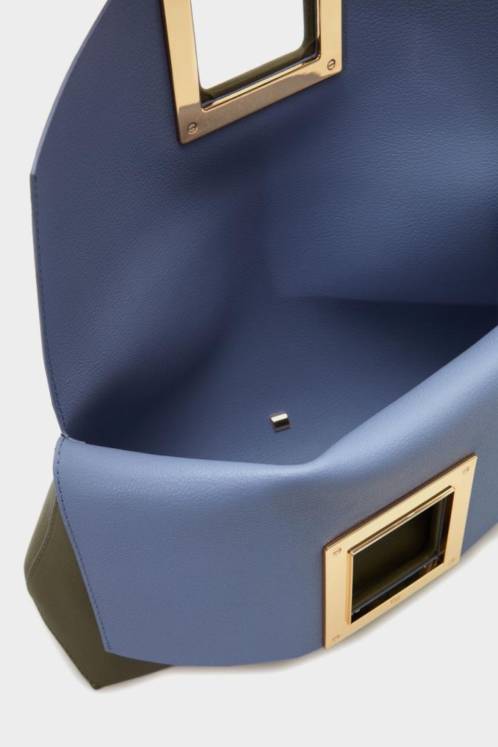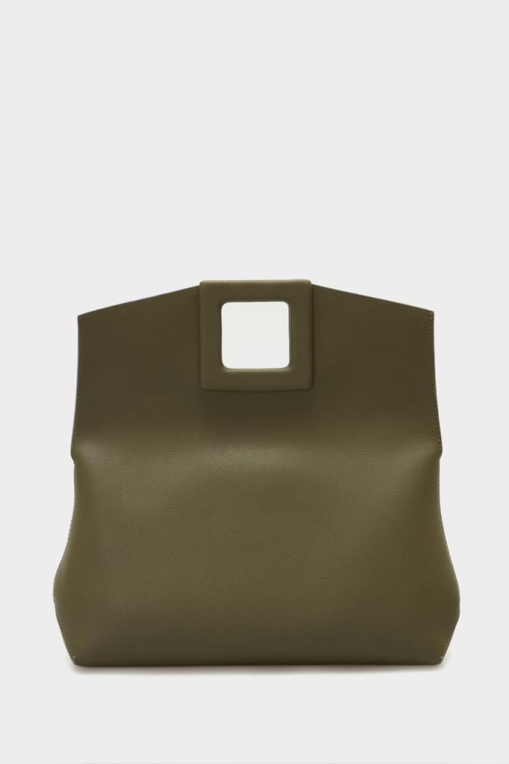 Bolso de mano en piel lisa con lujado a contraste y cierre de imán en forma de cubo acolchado. Interior de piel a contraste.