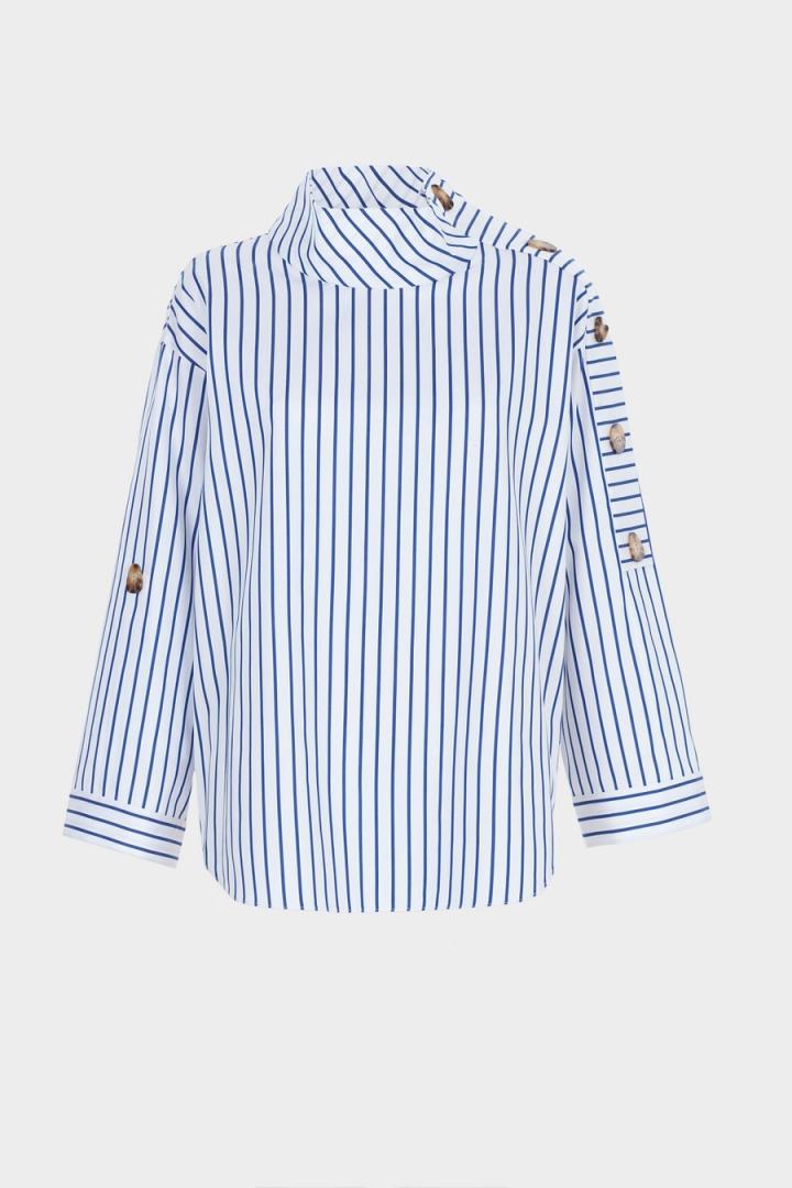 Mujer Purificacion Garcia Camisa rayas cuello chimenea botones Azul/Blanco | Camisas