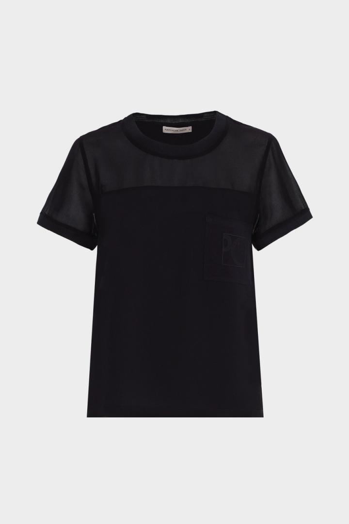 Mujer Purificacion Garcia CAMISETA CHIFFON JERSEY CUBO PG Negro | Camisetas y tops