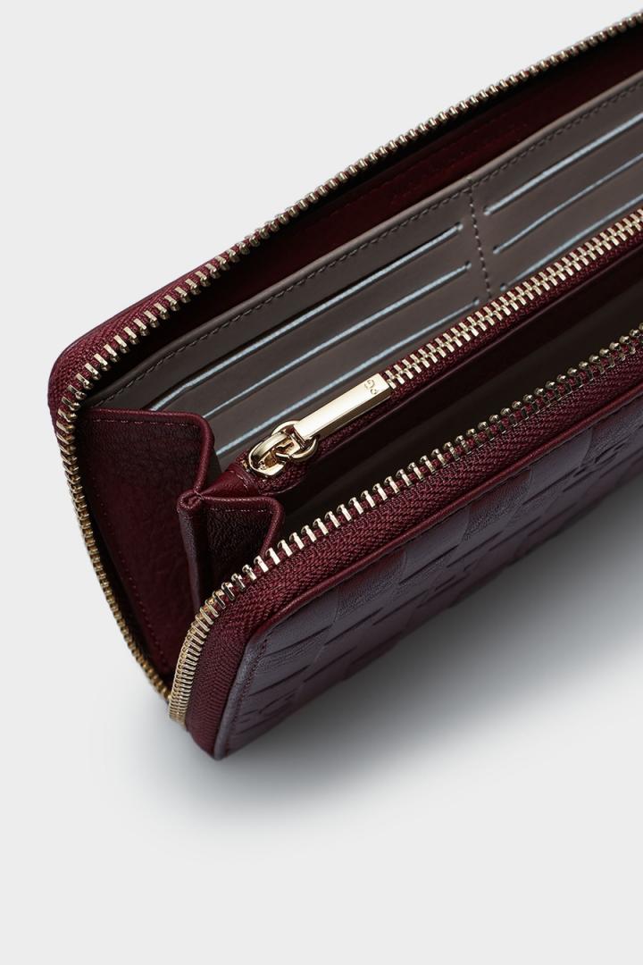 Cartera americana en piel grabada con Stamp Cubos PG. Cierre de cremallera con tirador en piel a tono. Interior con dos compartimentos para billetes, 12 ranuras para tarjetas y monedero con cremallera.