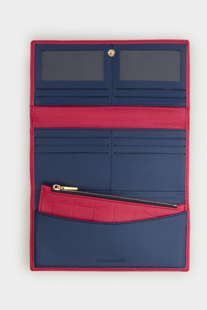 Cartera americana en piel con el grabado PG Bauhaus. Cierre de solapa con broche. Interior a contraste con monedero extraíble, dos compartimentos para billetes y 10 ranuras para tarjetas.