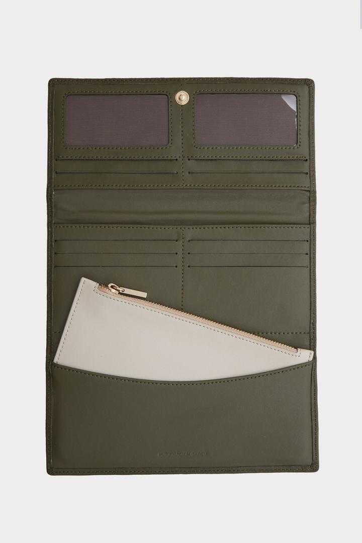 Cartera americana en piel con grabado de cubos y logo PG. Interior con monedero extraíble, dos compartimentos para billetes y 10 ranuras para tarjetas.