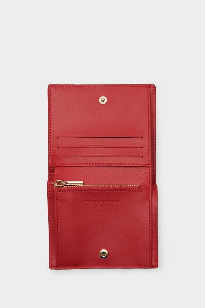 Cartera japonesa de piel con diseño Origami. Cierre de solapa y detalle de metálicas con logo PG. Interior con monedero, billetera y 3 ranuras para tarjetas.