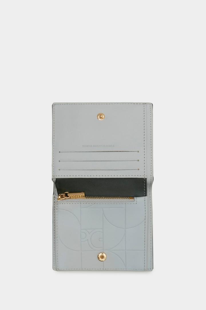 Cartera japonesa en piel con detalle de lazo en el exterior y grabado PG Bauhaus en el interior. Cierre de broche e interior a contraste con monedero, billetera y 3 ranuras para tarjetas.