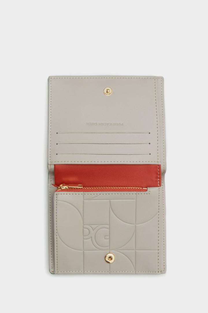 Cartera japonesa en piel con detalle de lazo en el exterior y grabado PG Bauhaus en el interior. Cierre de broche e interior a contraste con monedero, bil…