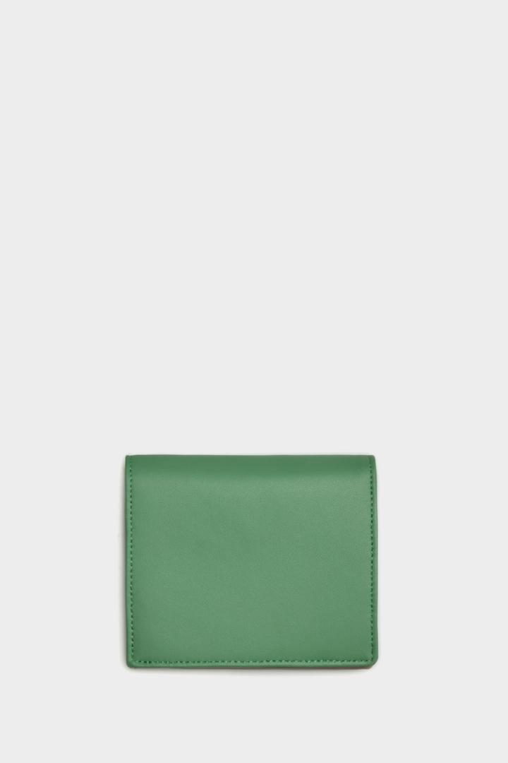 Cartera japonesa en piel con detalle de lazo en el exterior y grabado PG Bauhaus en el interior. Cierre de broche e interior a contraste con monedero, billetera y tres ranuras para tarjetas.