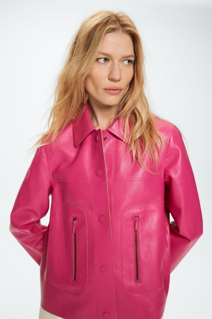 Mujer Purificacion Garcia CHAQUETA CORTA ECOPIEL Fucsia | Prenda exterior