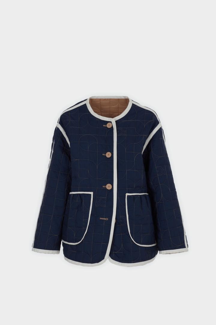 Chaquetón reversible de línea oversize en nylon con acolchado Pop Bauhaus. Cuello caja y cierre frontal de botones personalizados. Dos bolsillos parche fruncidos en el anverso y dos bolsillos de vivo en el reverso. Bajo…