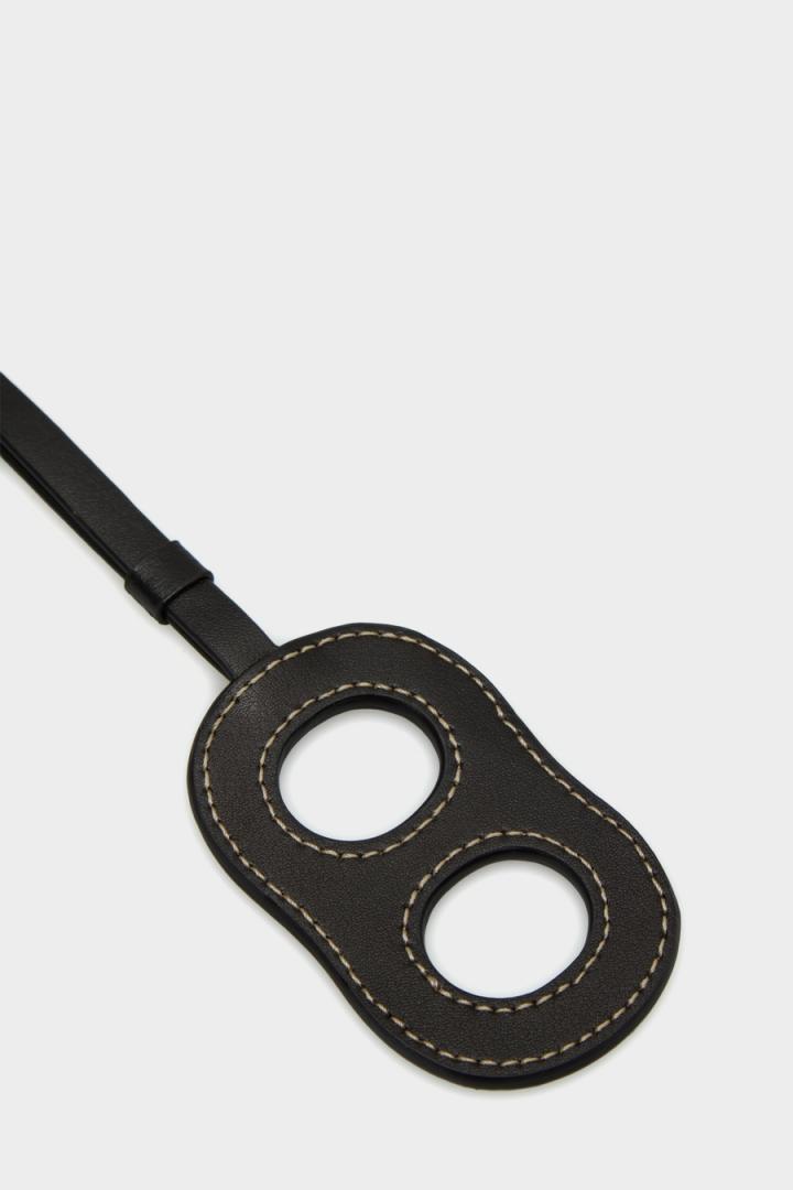 Charm de piel en forma de Ocho con pespuntes a contraste y mosquetón personalizado.