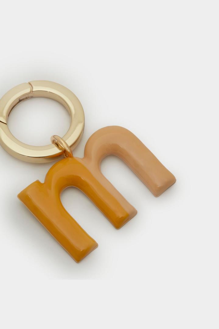 Charm con colgante de letra M esmaltada. Mosquetón bañado en oro.