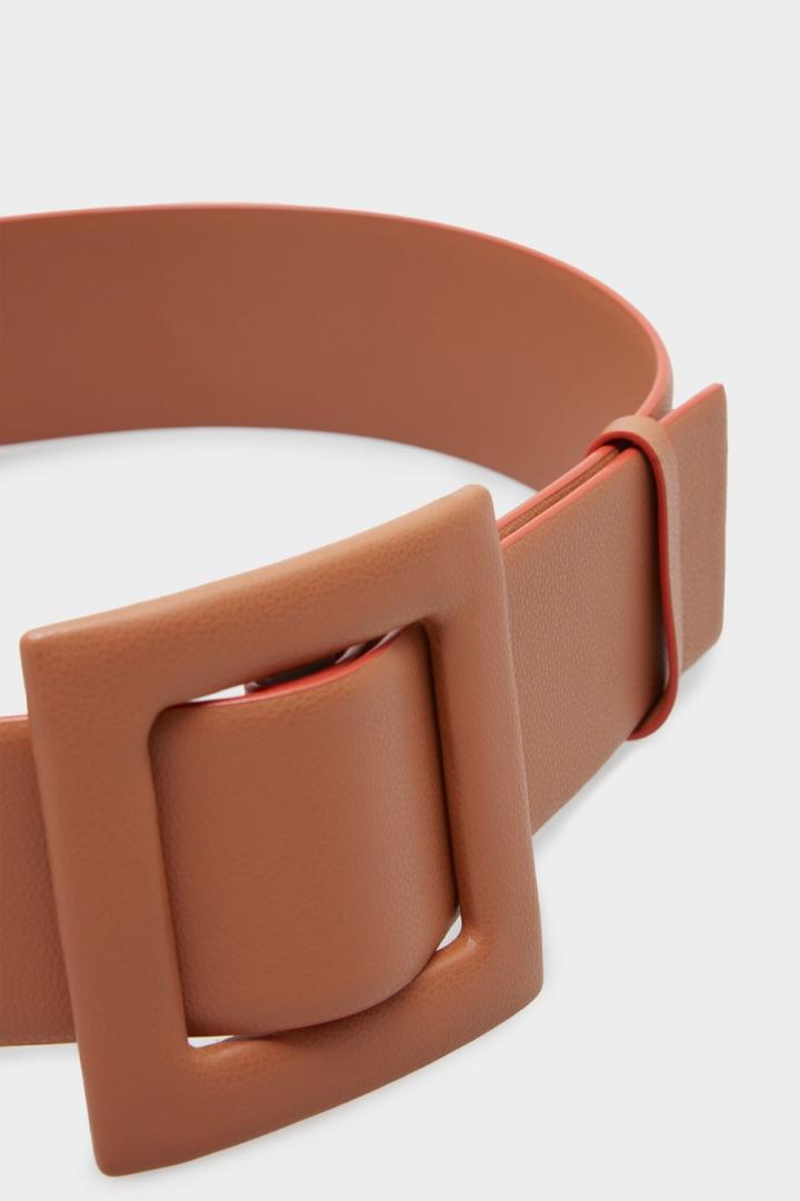 Cinturón fajín en piel con hebilla en forma de cubo acolchado y troquelado, lujado a contraste y trabilla. Ancho: 6 cm