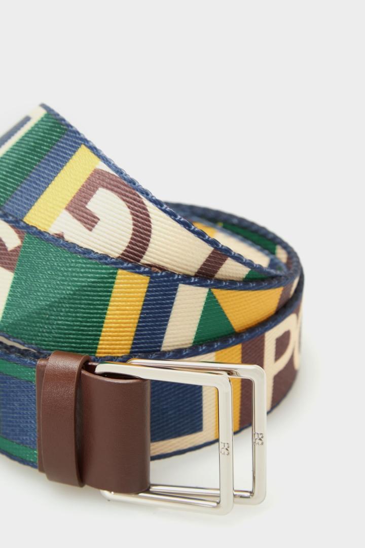 Cinturón en grosgrain con estampado Cinta PG multicolor. Hebilla metálica personalizada. Ancho: 3,5 cm…