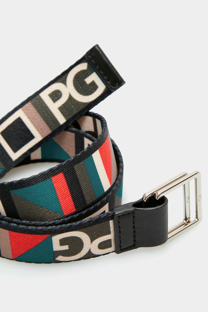 Cinturón de grosgrain con estampado PG multicolor. Hebilla metálica. Ancho: 4 cm