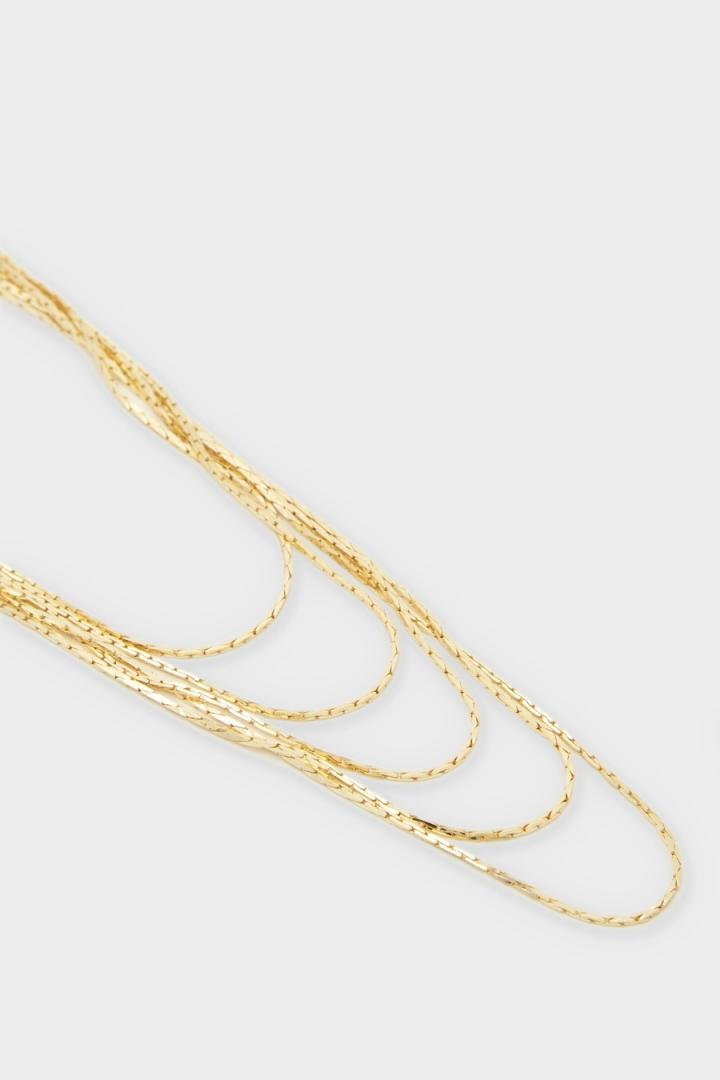Collar bañado en oro formado por varias cadenas finas. Cierre grabado con logo PG.