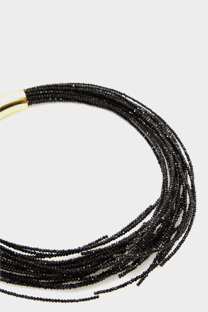 Collar bañado en oro con cuentas de cristal de color negro.
