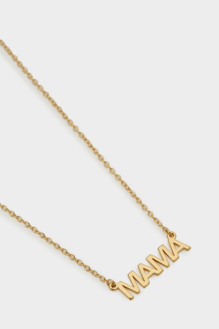 Collar bañado en oro con detalle de la palabra Mamá bañada en oro. Cierre de nudo corredizo.