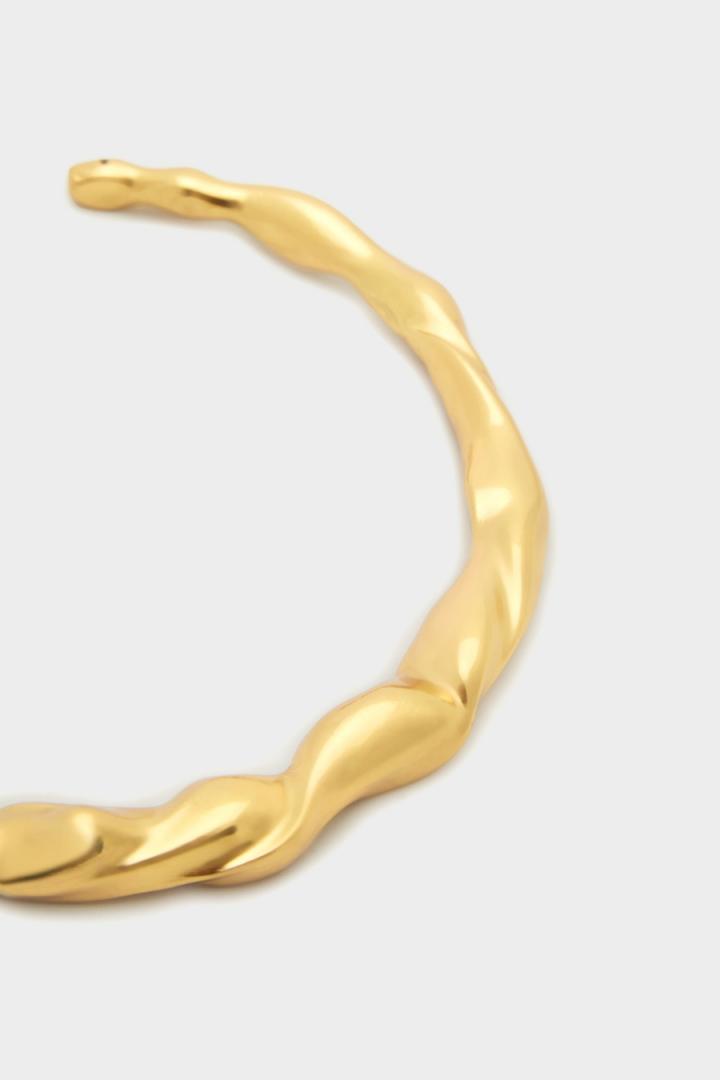 Collar rígido abierto bañado en oro con diseño orgánico.