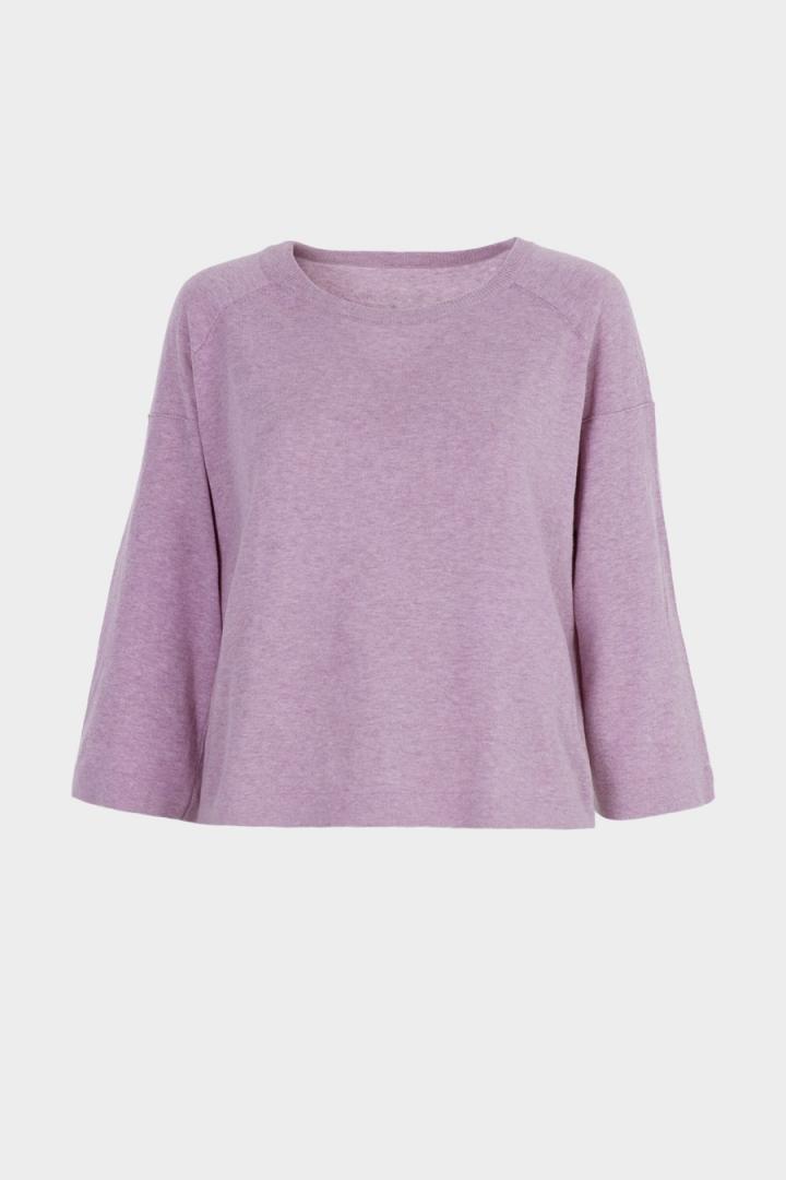 Jersey corto de línea recta en punto de algodón. Cuello barco, hombro caído y manga ranglan francesa. Det…