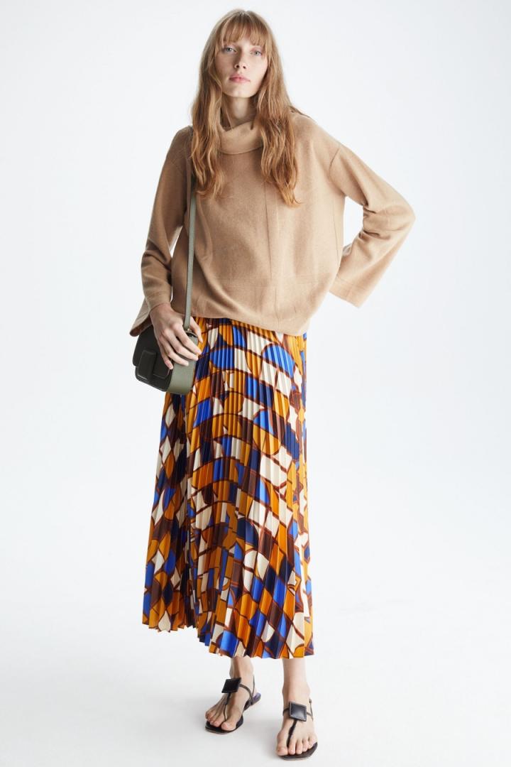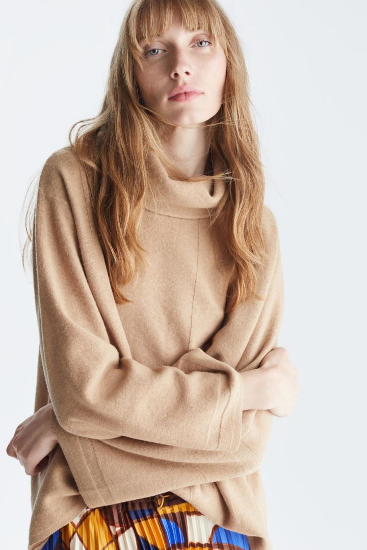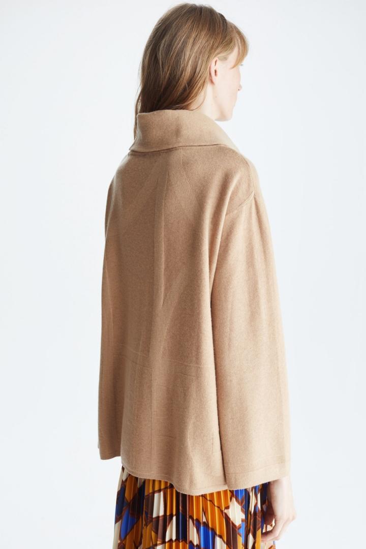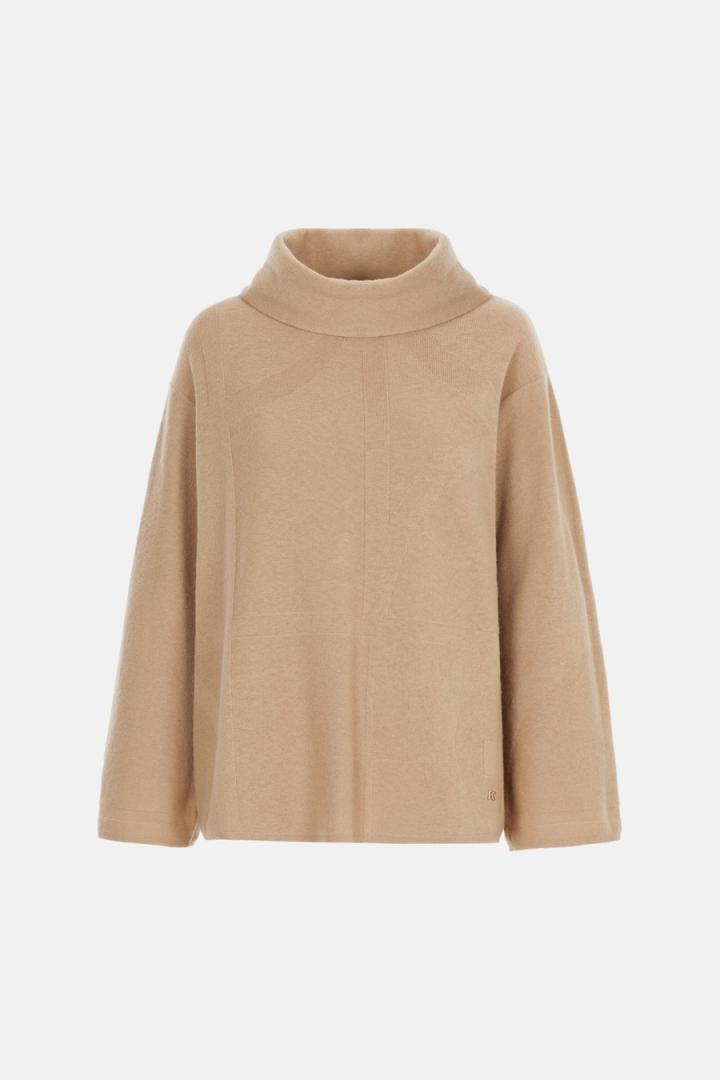 Jersey de línea recta en punto de mezcla de lana y algodón con jacquard de maxilogo PG. Cuello vuelto, hombro caído y manga amplia. Detalle de …