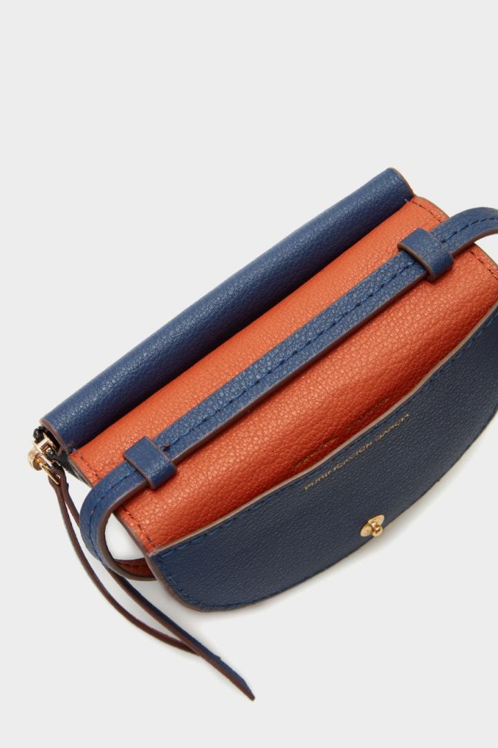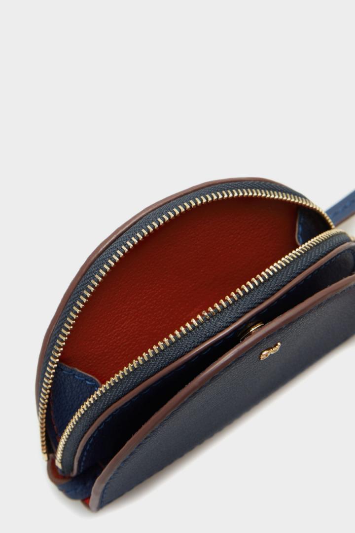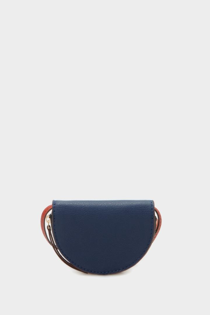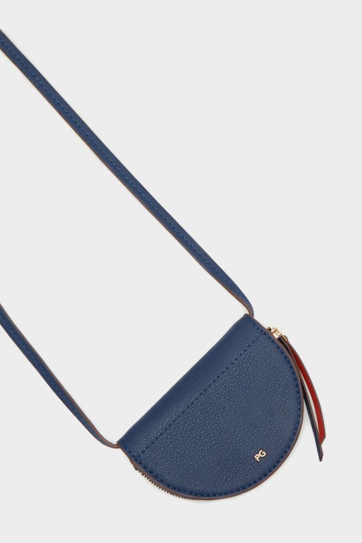 Mini bolso en piel con diseño media luna y lujado a contraste. Un compartimento con cierre de cremallera y tirador en piel a tono y un compartimento con cierre de solapa y broche. Asa para colgar al cuello o como bandolera en piel a tono. Detalle de logo PG metálico.