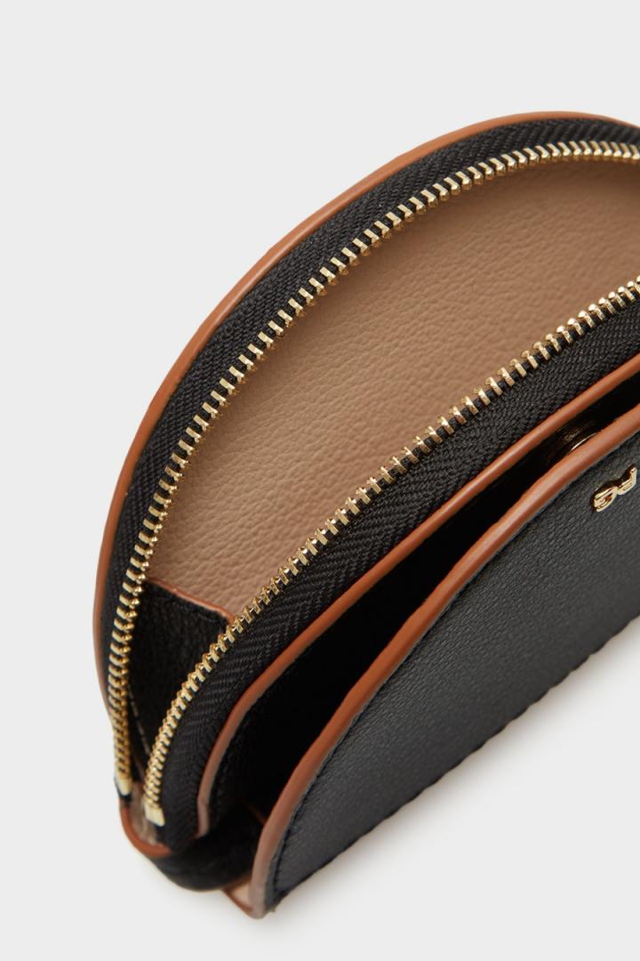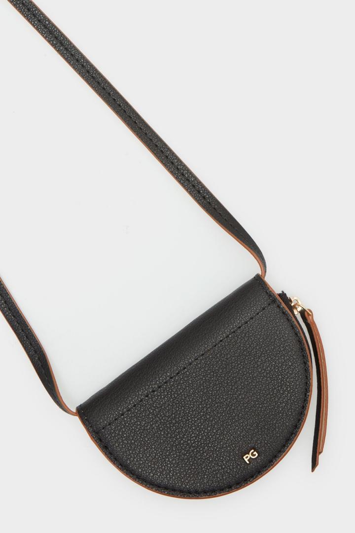 Mini bolso en piel con diseño media luna y lujado a contraste. Un compartimento con cierre de cremallera y tirador en piel a tono y un compartimento con cierre de solapa y broche. Asa para colgar al cuello o como bandolera en piel a tono. Detalle de logo PG metálico.