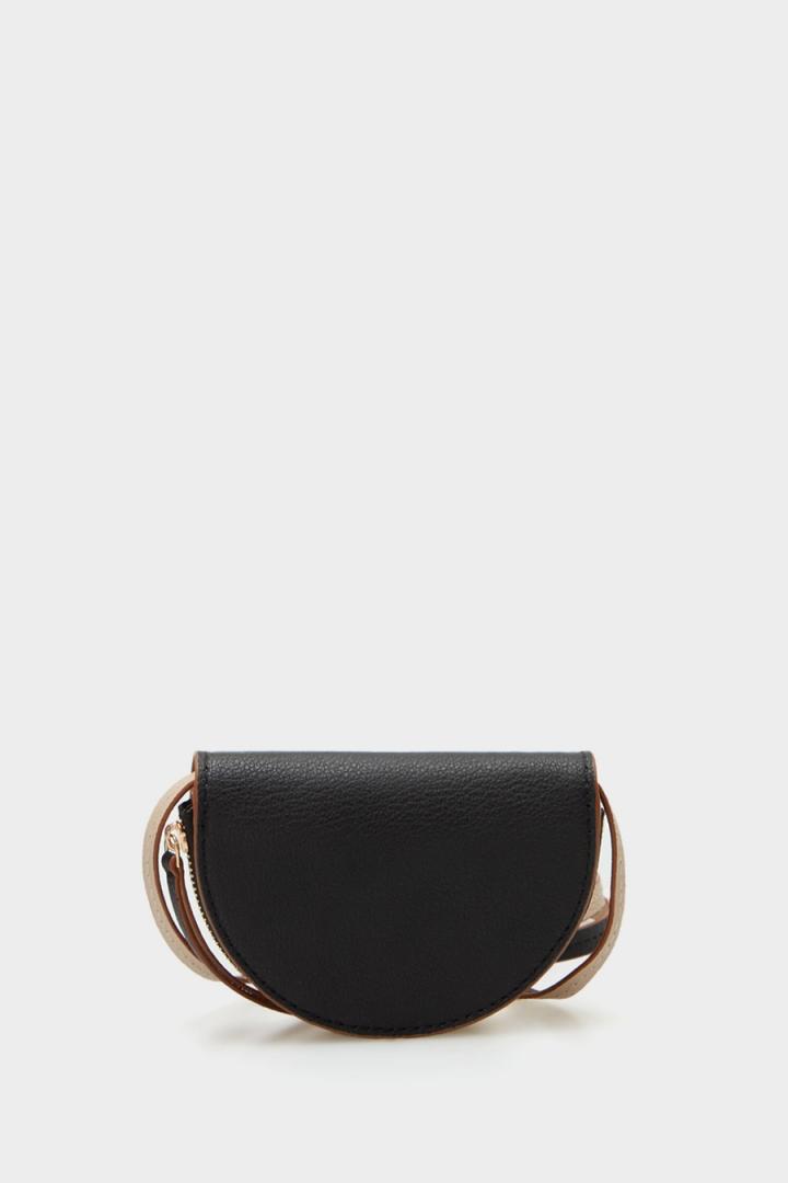 Mini bolso en piel con diseño media luna y lujado a contraste. Un compartimento con cierre de cremallera y tirador en…