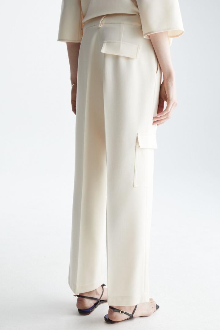 Mujer Purificacion Garcia Pantalón cargo recto doble tela Crudo | Pantalones