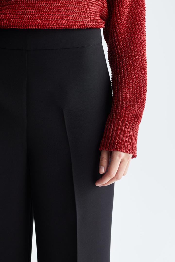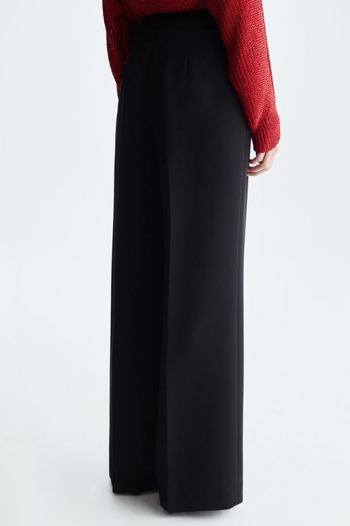 Pantalón palazzo en crepé. Cierre de cremallera oculta lateral. La modelo mide 177 cm y lleva una talla 36.