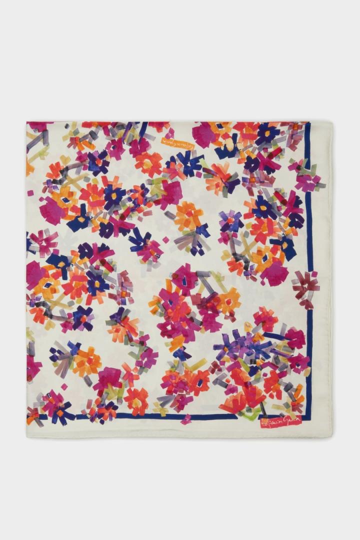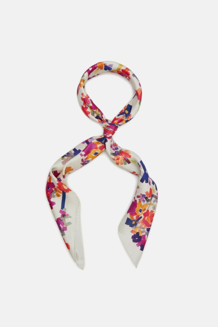 Pañuelo en seda con estampado floral Bohemia y bordes a contraste.