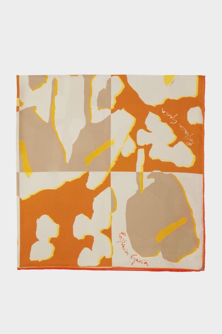 Mujer Purificacion Garcia PAÑUELO SEDA 90 FLORES PARA FRIDA Naranja/Camel/Beige | Pañuelos y bufandas