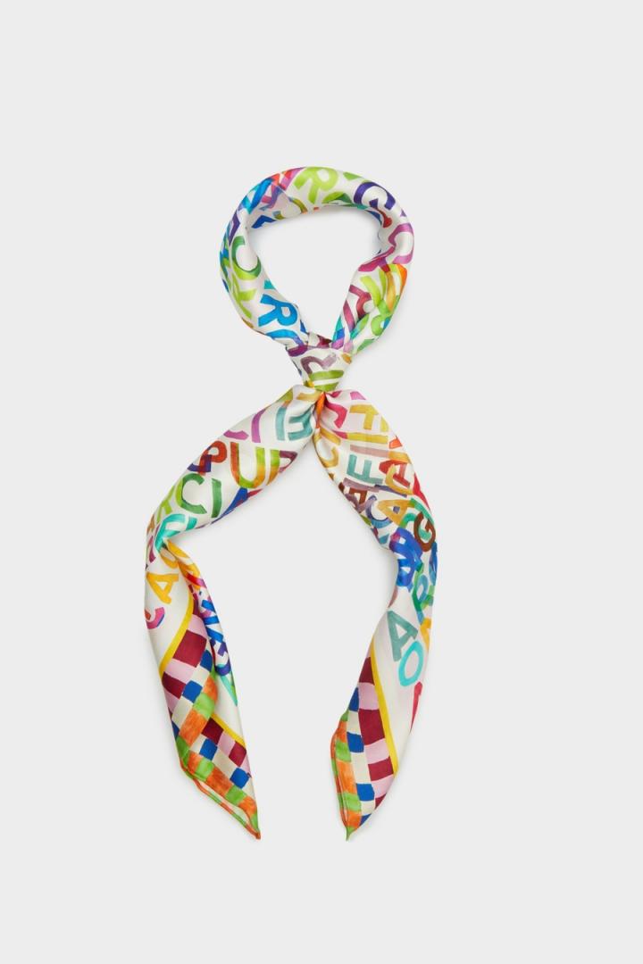 Pañuelo de seda con estampado Ginza con logo Purificacion Garcia y cubos multicolor.