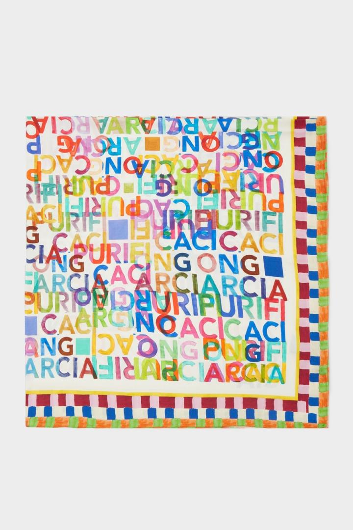 Pañuelo de seda con estampado Ginza con logo Purificacion Garcia y cubos multicolor….