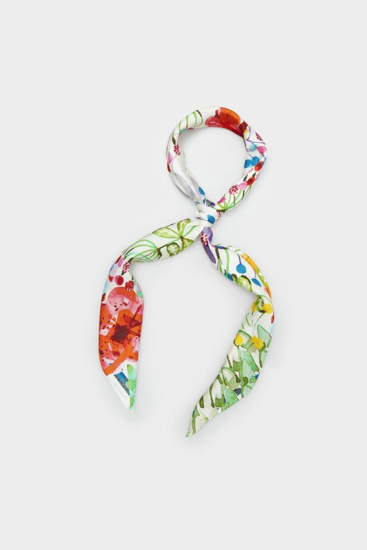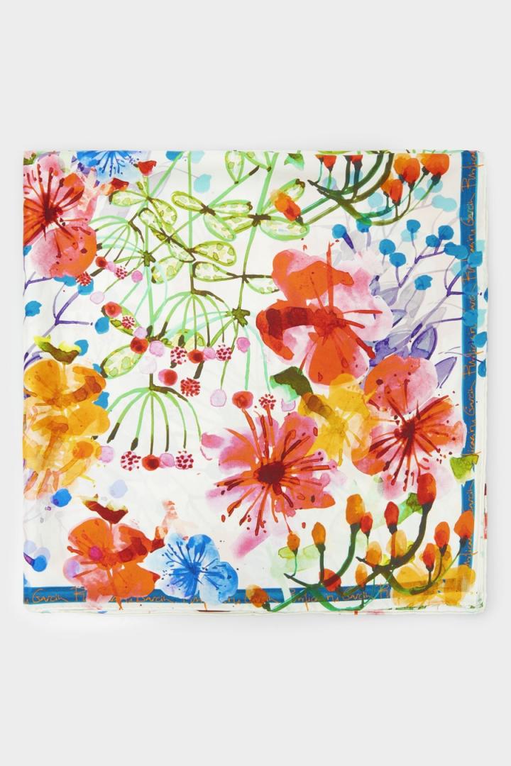 Pañuelo de seda con estampado de flores multicolor.