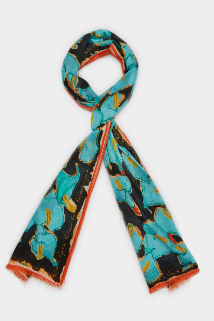 Pashmina de lana con estampado floral de calas y terminaciones desflecadas.