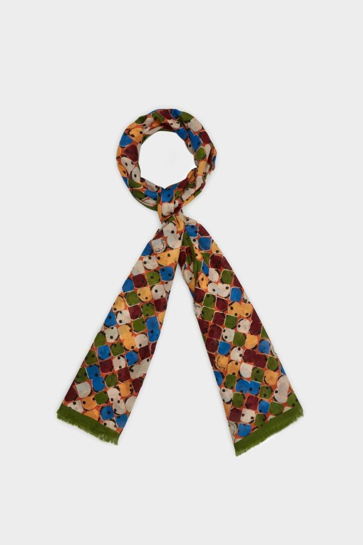 Pashmina de lana con estampado orgánico de Catarinas y terminaciones desflecadas.