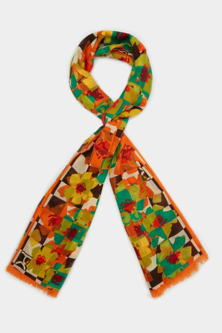Pashmina de lana con el estampado floral Gambito y terminaciones desflecadas.