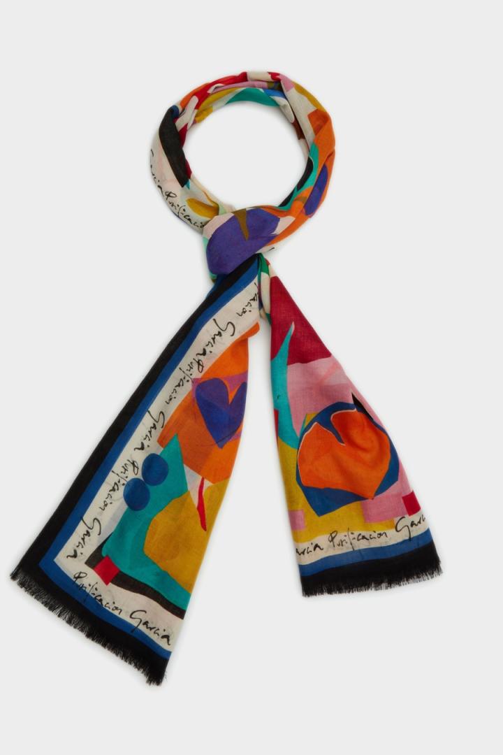 Pashmina en lana con estampado multicolor ‘Lovers’….