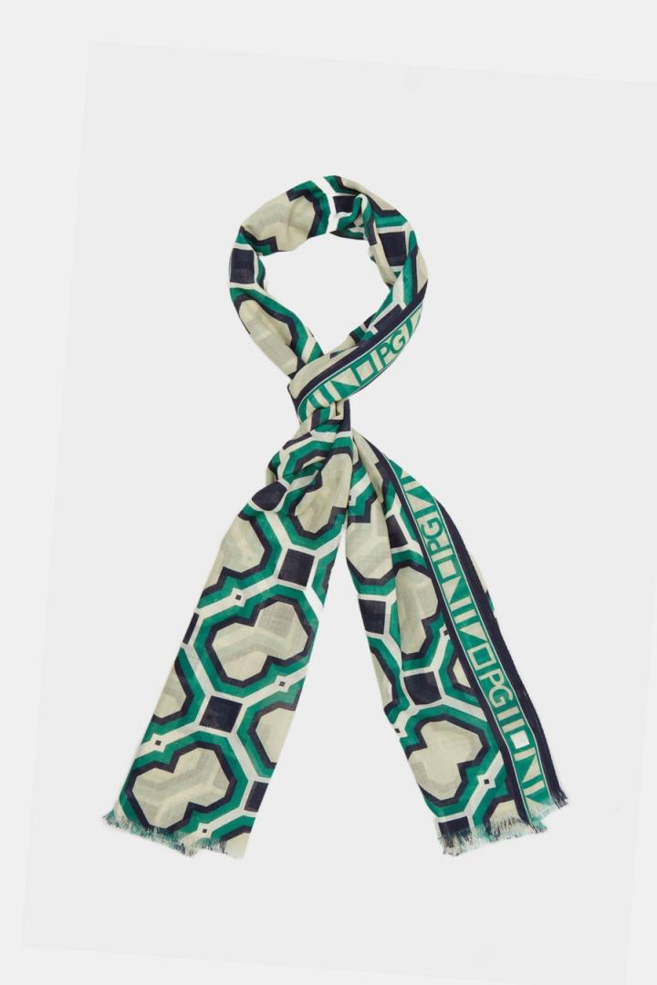 Pashmina de lana con estampado Ocho en formato Varsity y Cinta PG y bajos desflecados….