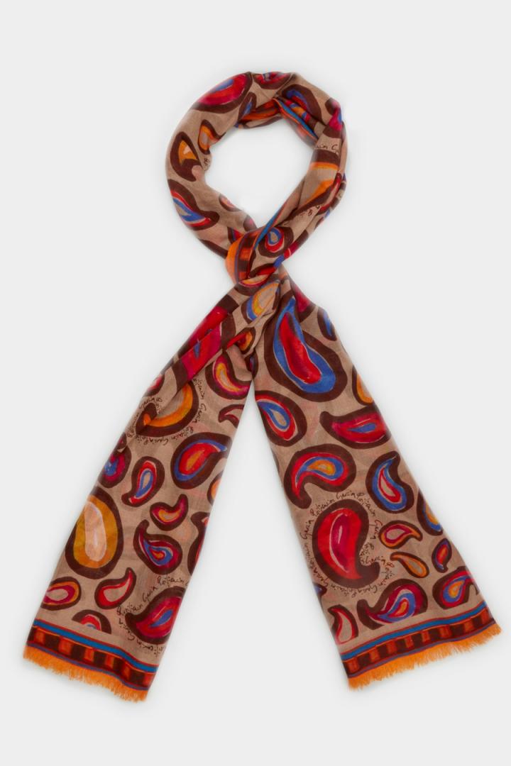 Pashmina de lana con el estampado Purimecios y terminaciones desflecadas….