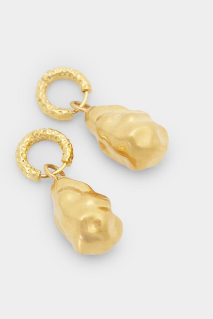 Pendientes bañados en oro formados por un aro con detalle en forma de perla barroca. Cierre criolla.
