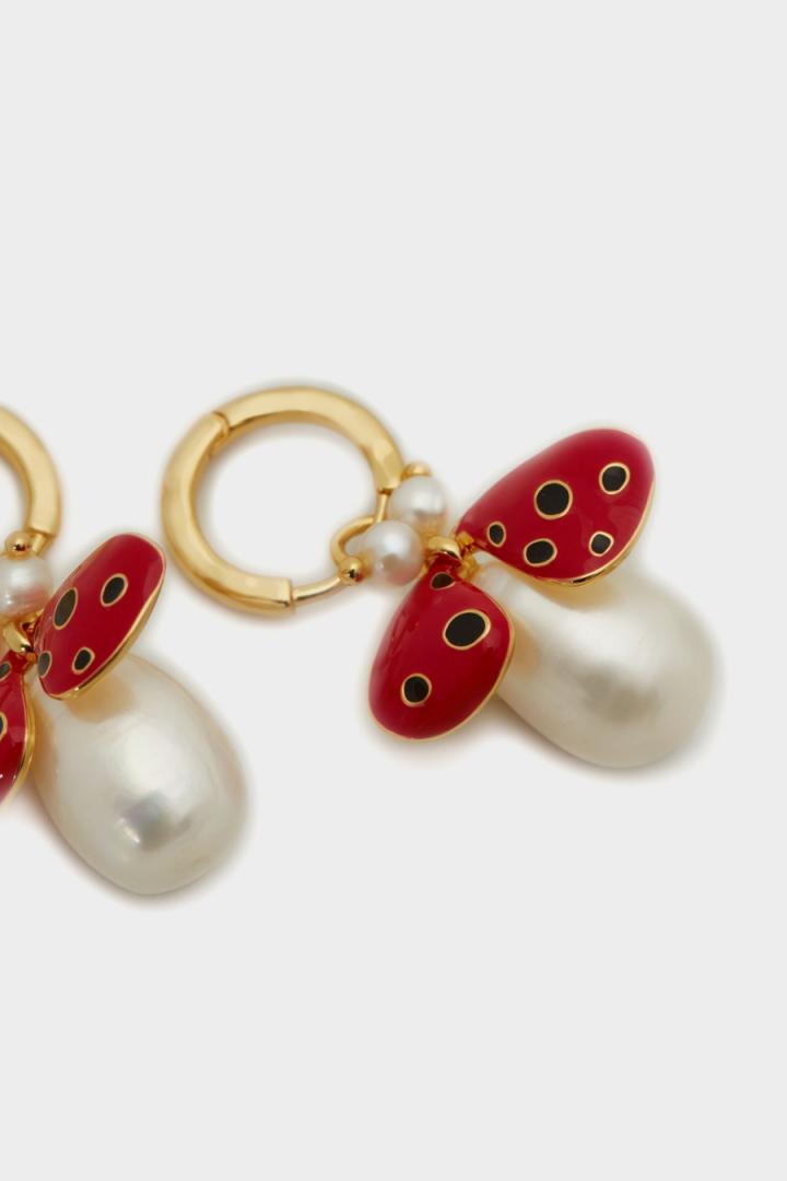 Pendientes de aro bañados en oro con diseño de Catarina. Cierre de criolla.