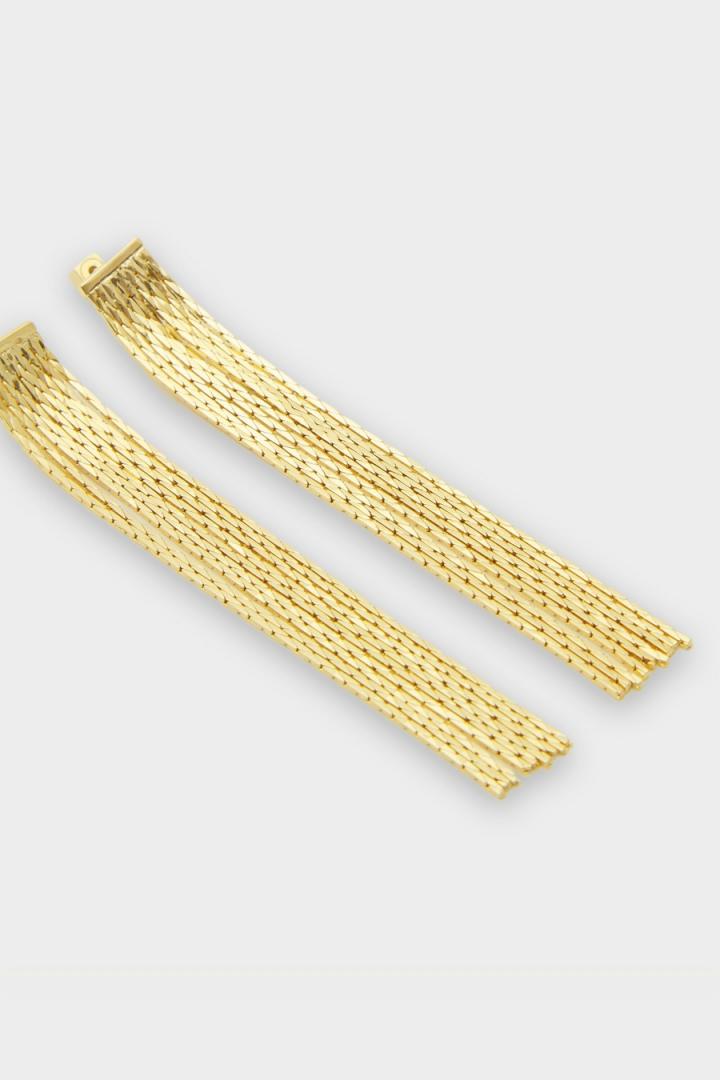 Pendientes bañados en oro formados por varias cadenas finas. Cierre con tuerca a presión en forma de cubo.