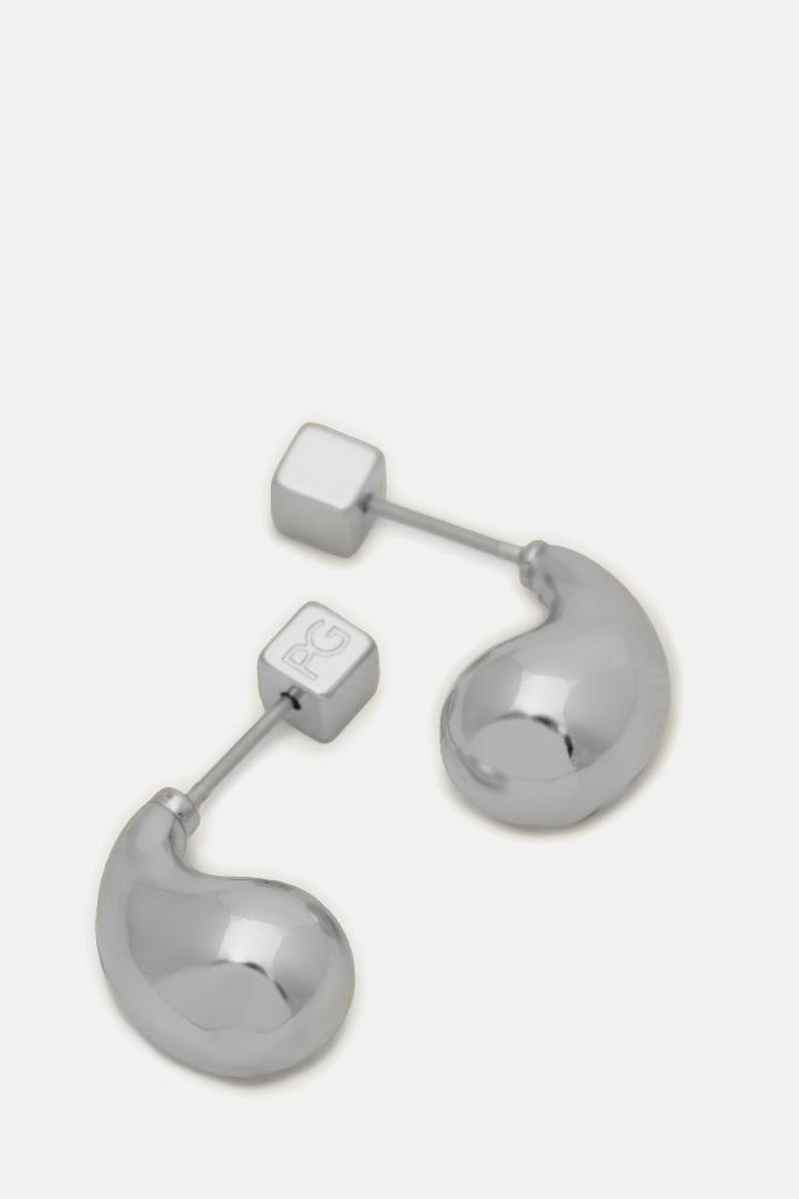 Pendientes bañados en plata con forma de gota. Cierre a presión con forma de cubo personalizado.