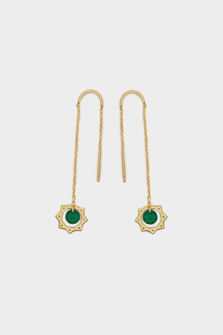 Pendientes largos bañados en oro formados por una cadena y un colgante en forma de estrella con detalle de cristal….